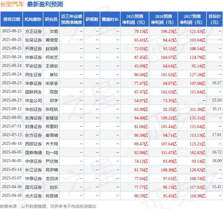上海证券有限责任公司仇百良近期对长安汽车进行研究并发布了研究报告《25H1盈利能力向好,看好海外及新能源市场贡献新增量》,给予长安汽车买入评级。